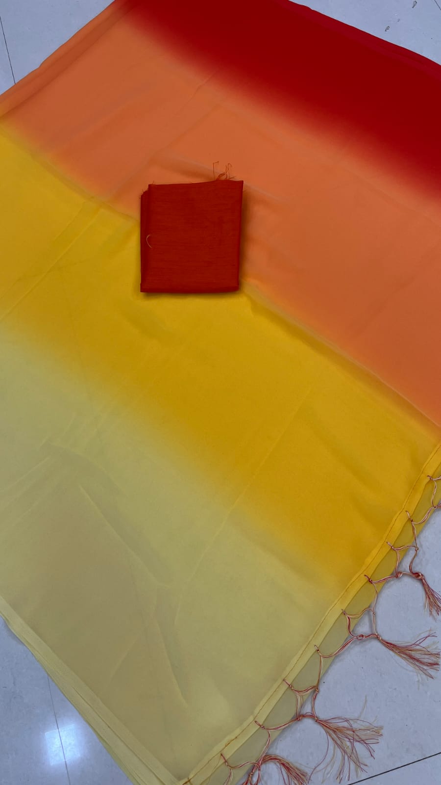 New Beautiful Yellow and Orange Ombre Georgette delicate Saree with unstitch Blouse