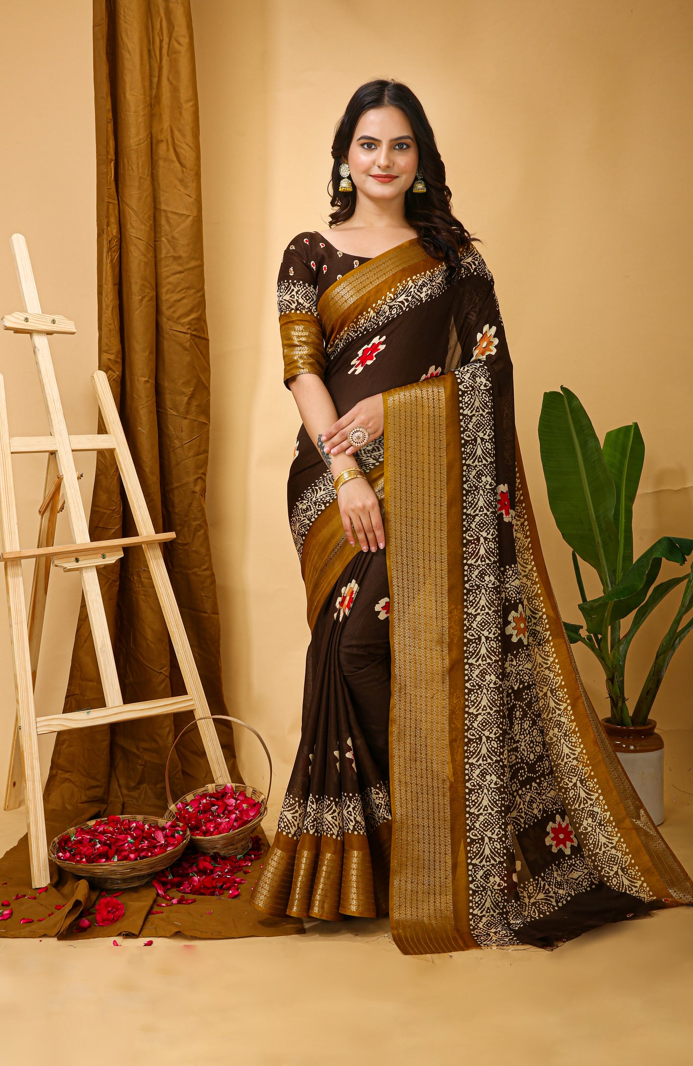 Product Name: New Enchanting Fancy Soft Marshmallow Yellow Bodered Brown Saree With Unstiched Blouse