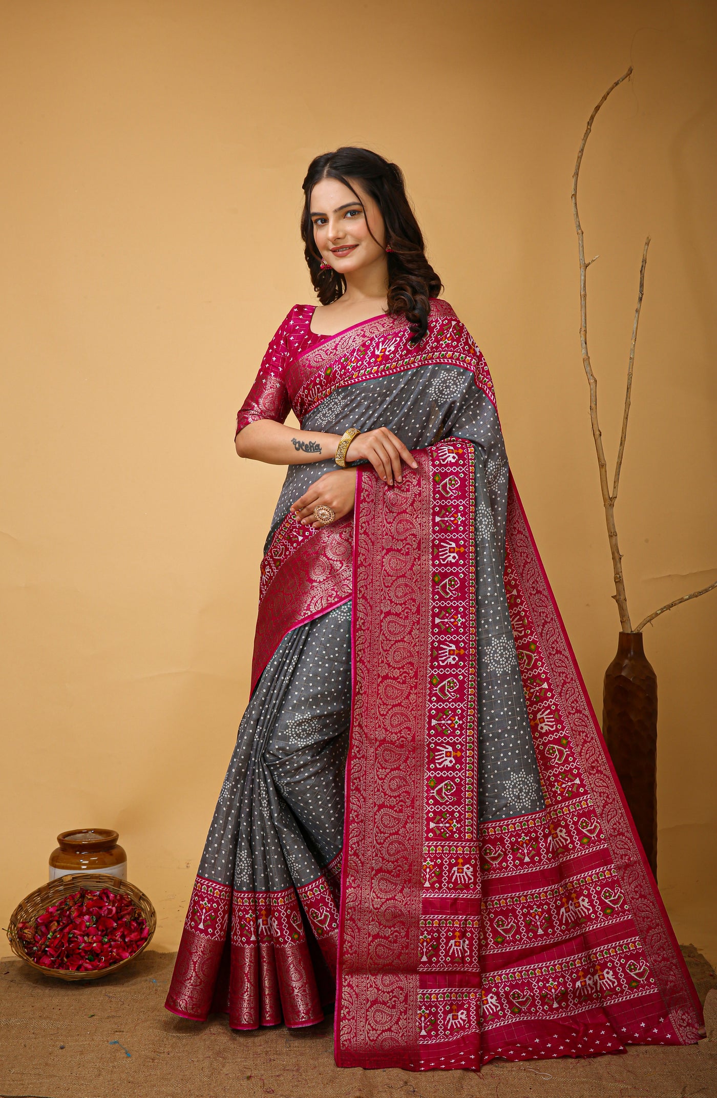 Product Name: New Enchanting soft cotton Bandhani Printed Light Grey Saree With Unstiched Blouse