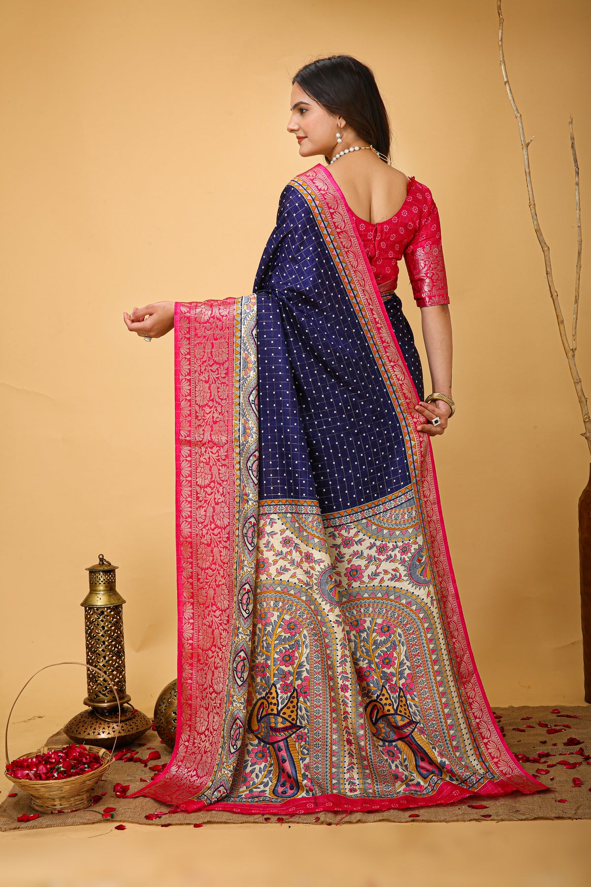 New Enchanting soft cotton Dot Printed Navy Blue Saree With Unstiched – Divashree index