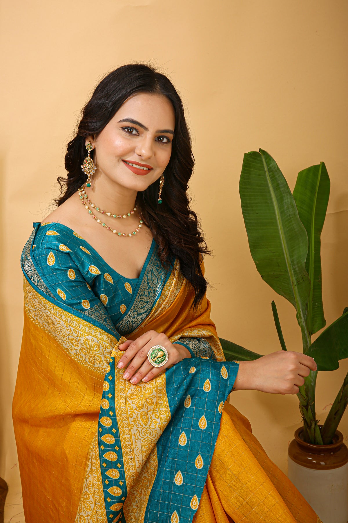 New Enchanting Soft Cotton Checks Printed Yellow Saree With Unstiched – Divashree index