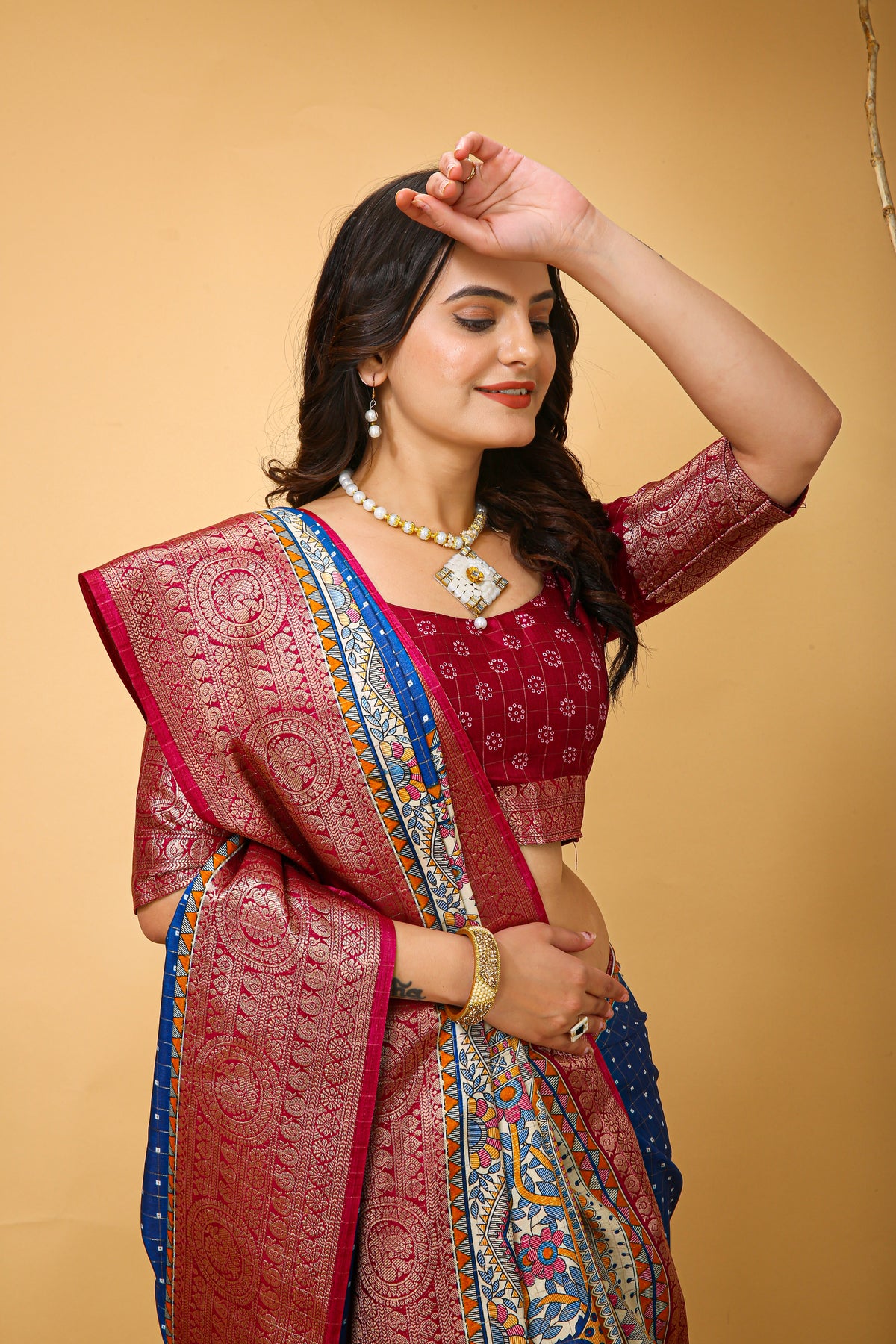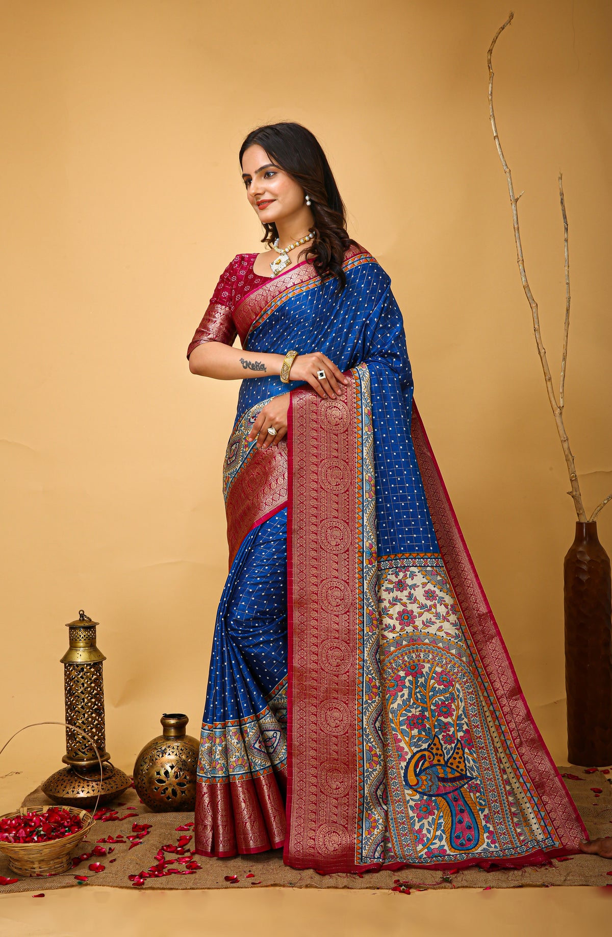 New Enchanting soft cotton Dot Printed Cobalt-Blue Saree With Unstiche – Divashree index