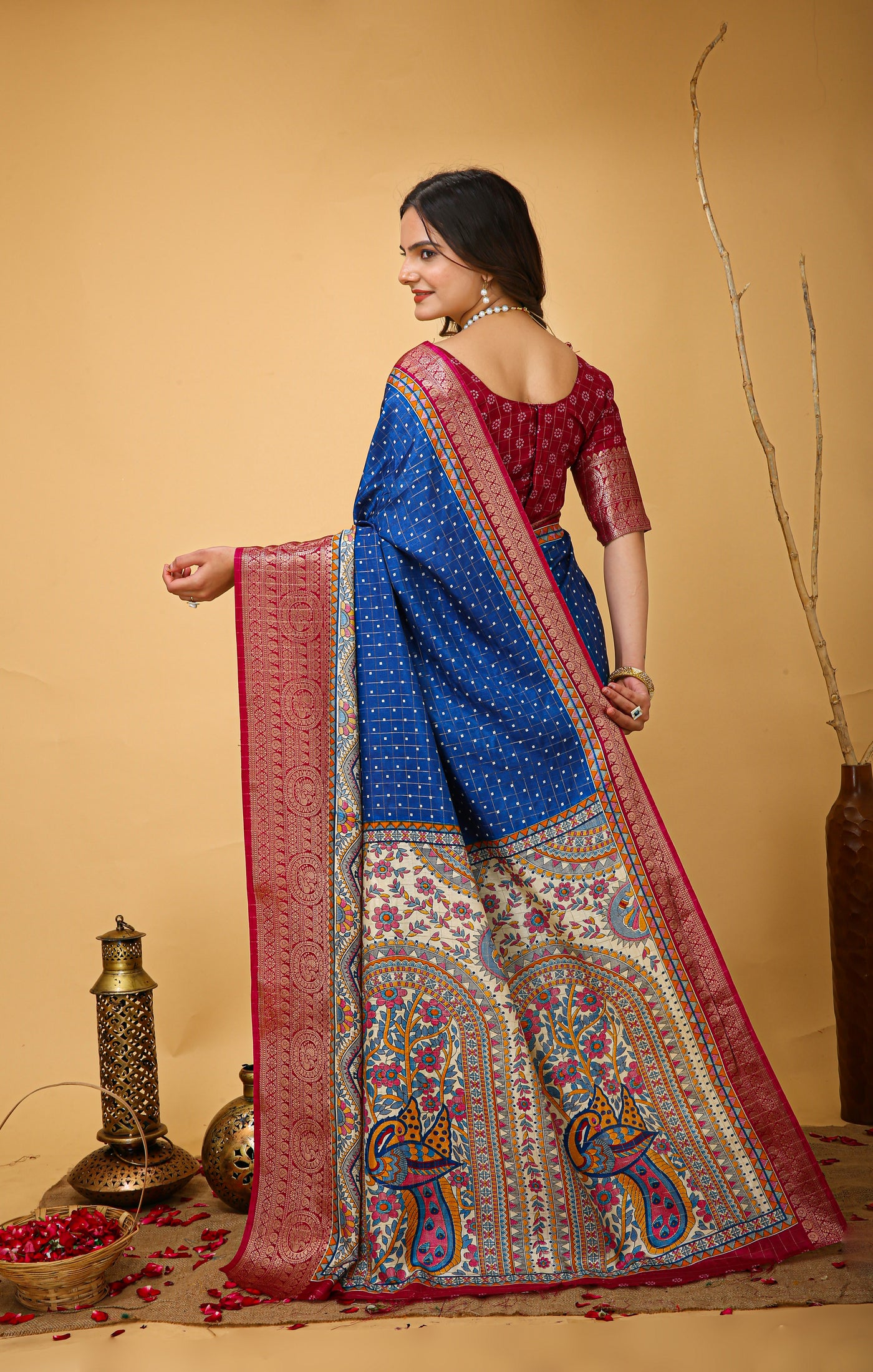 New Enchanting soft cotton Dot Printed Cobalt-Blue Saree With Unstiched Blouse