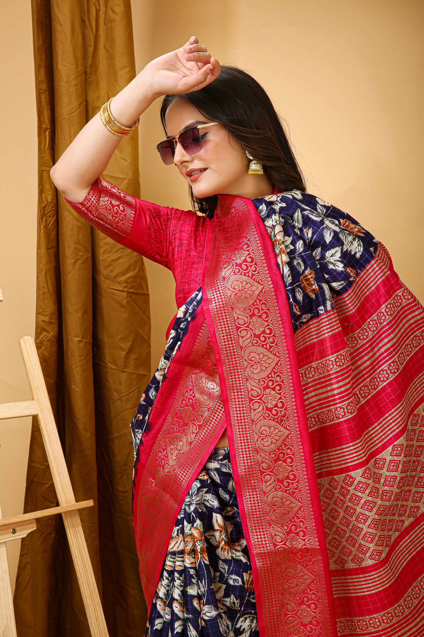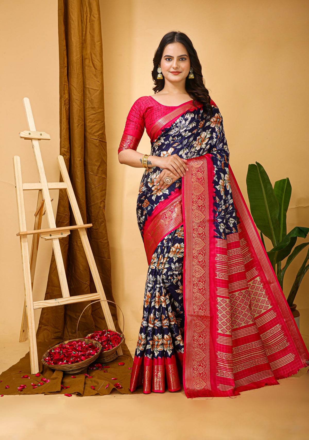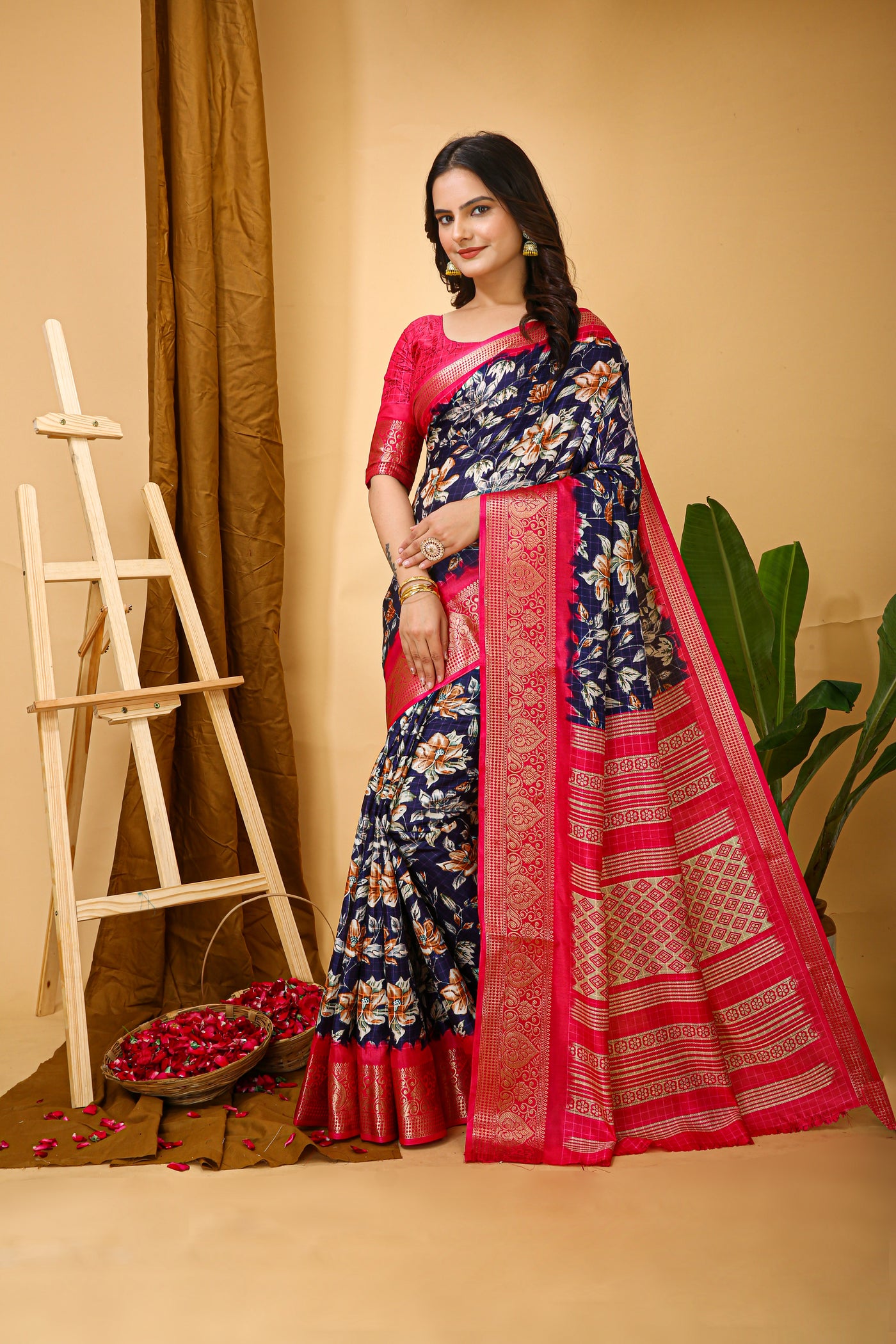 New Enchanting Soft Cotton Pink Bordered Blue Saree With Unstiched Blo – Divashree index