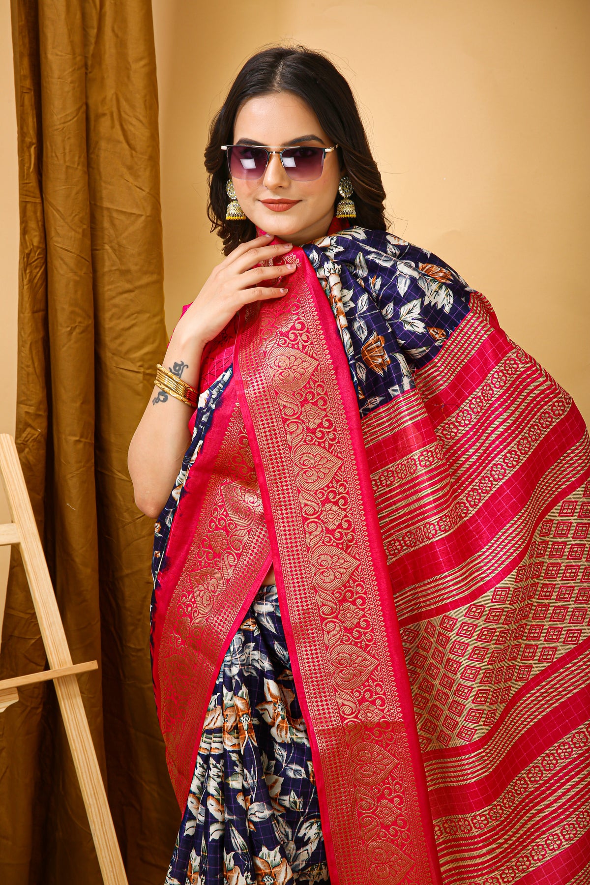 New Enchanting Soft Cotton Pink Bordered Blue Saree With Unstiched Blouse