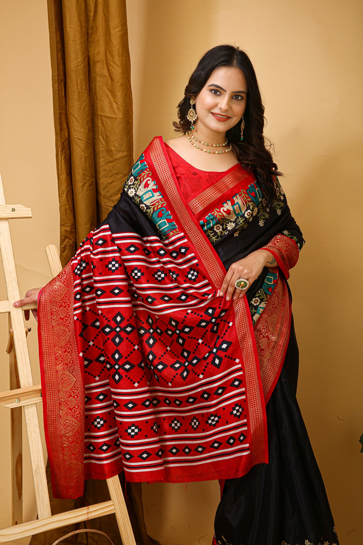 Product Name: New Enchanting soft cotton Traditional Elephant Printed Black Saree With Unstiched Blouse