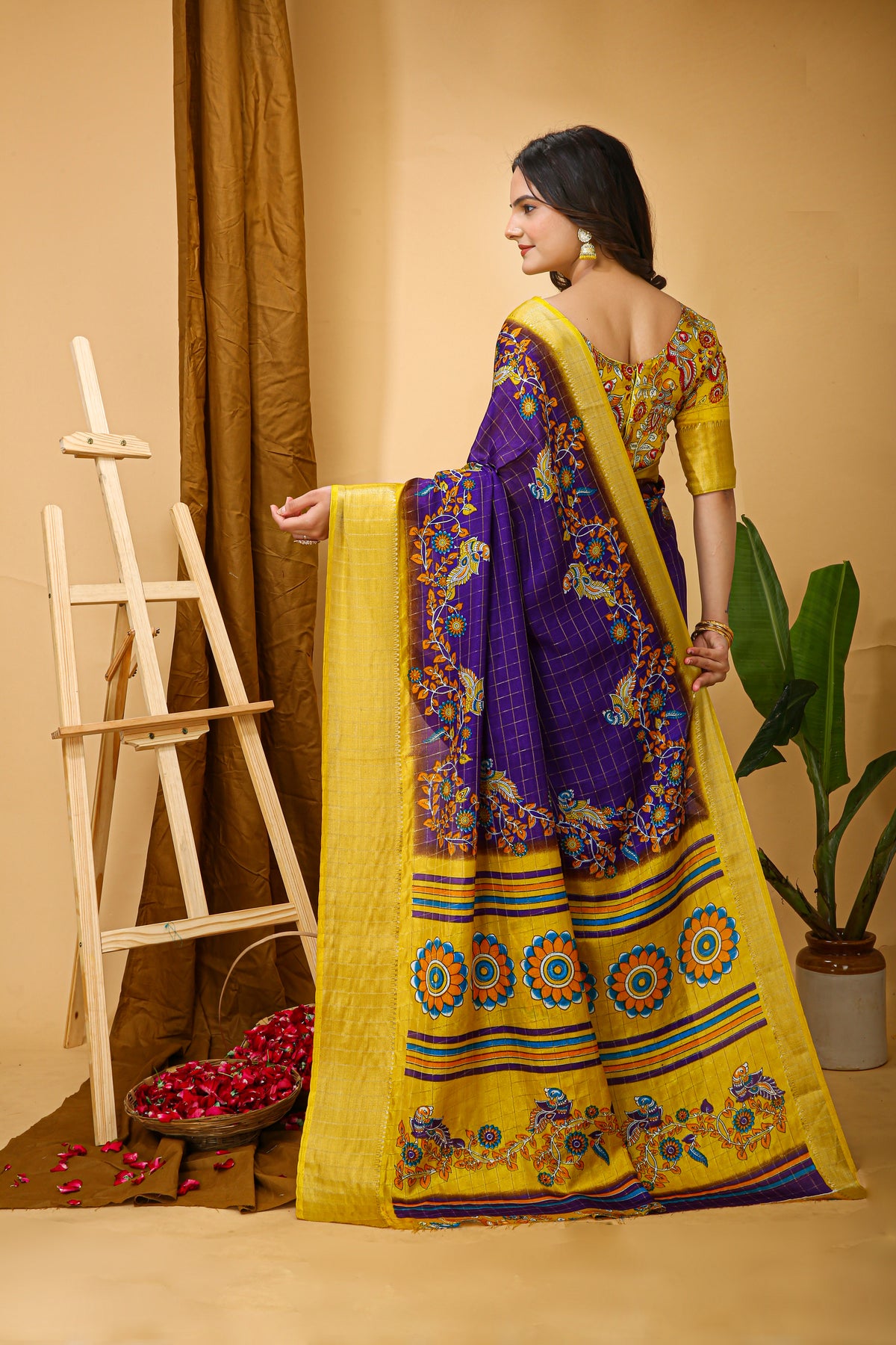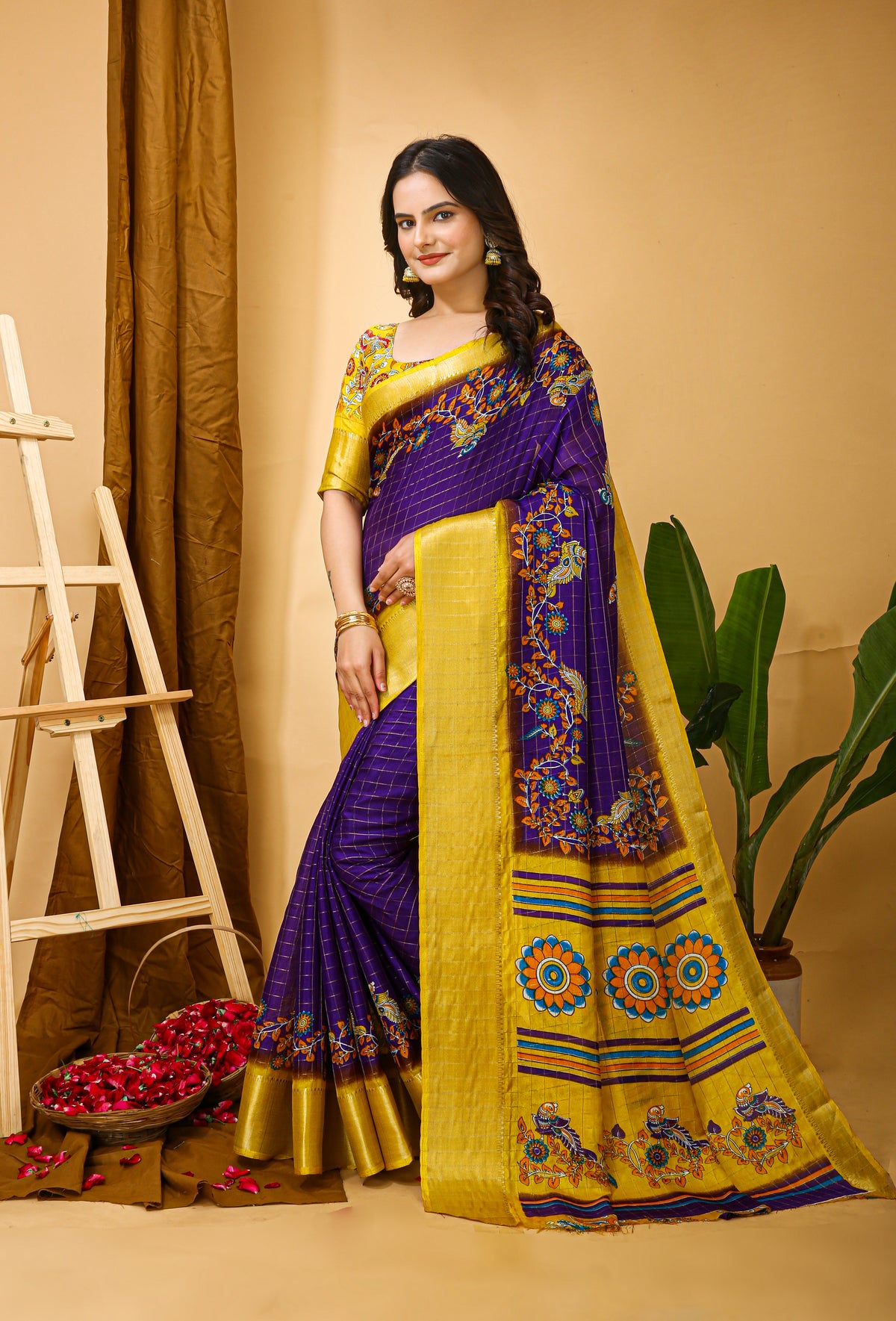 New Fancy Kalamkari Print & Jecard Kanjivaram Zari Boder Dark Purple S – Divashree index