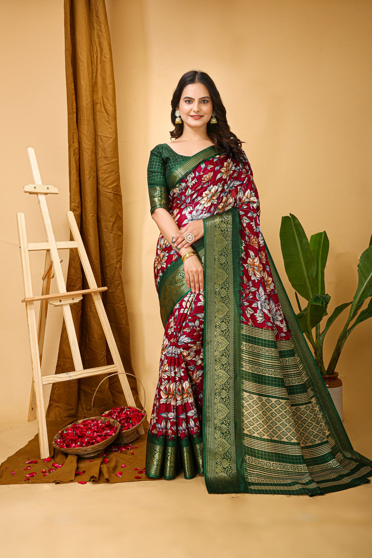 Product Name: New Enchanting soft cotton Green Bordered Red Saree With Unstiched Blouse