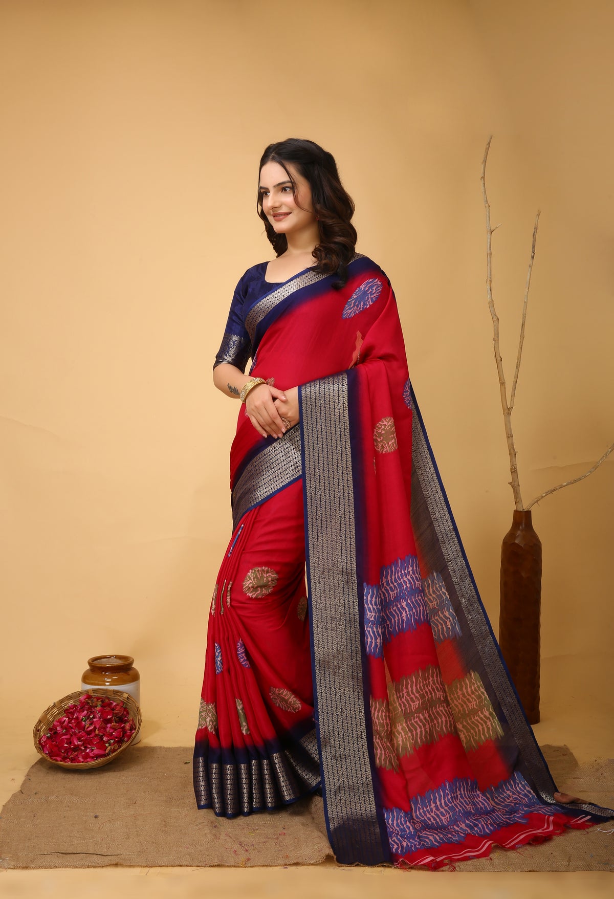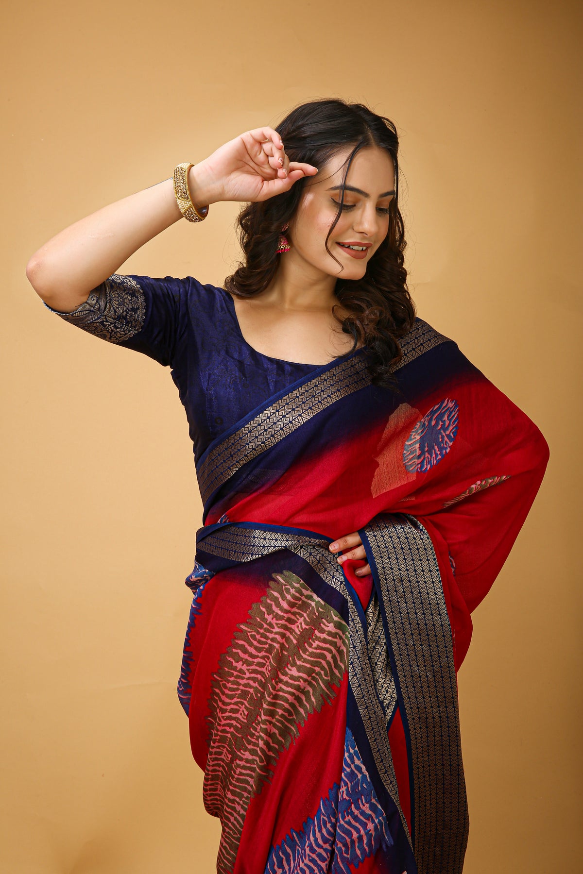 Product Name: New Fancy Soft Marshmallow Red Saree With Unstiched Blouse