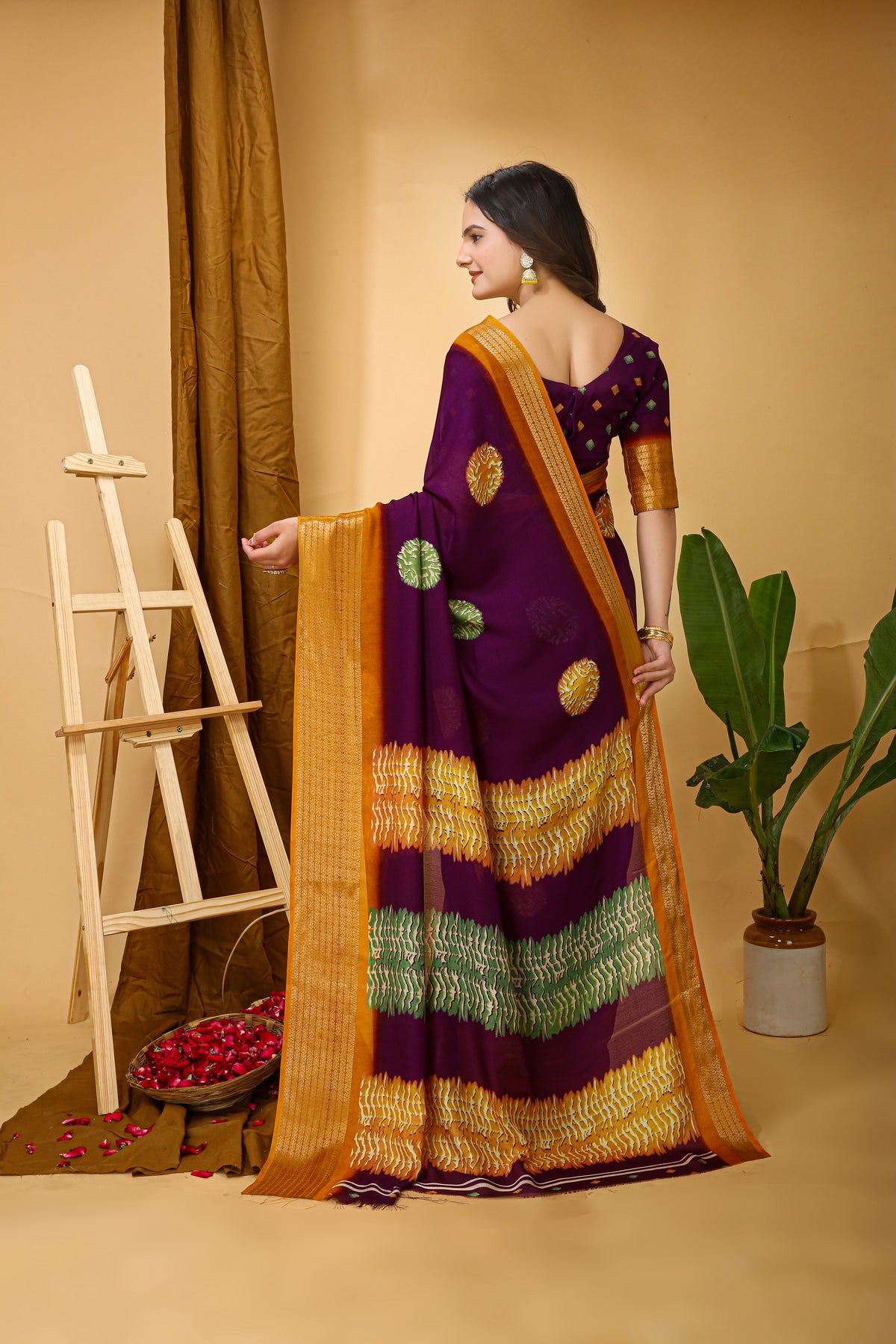 New Fancy Soft Marshmallow Wine Saree With Unstiched Blouse