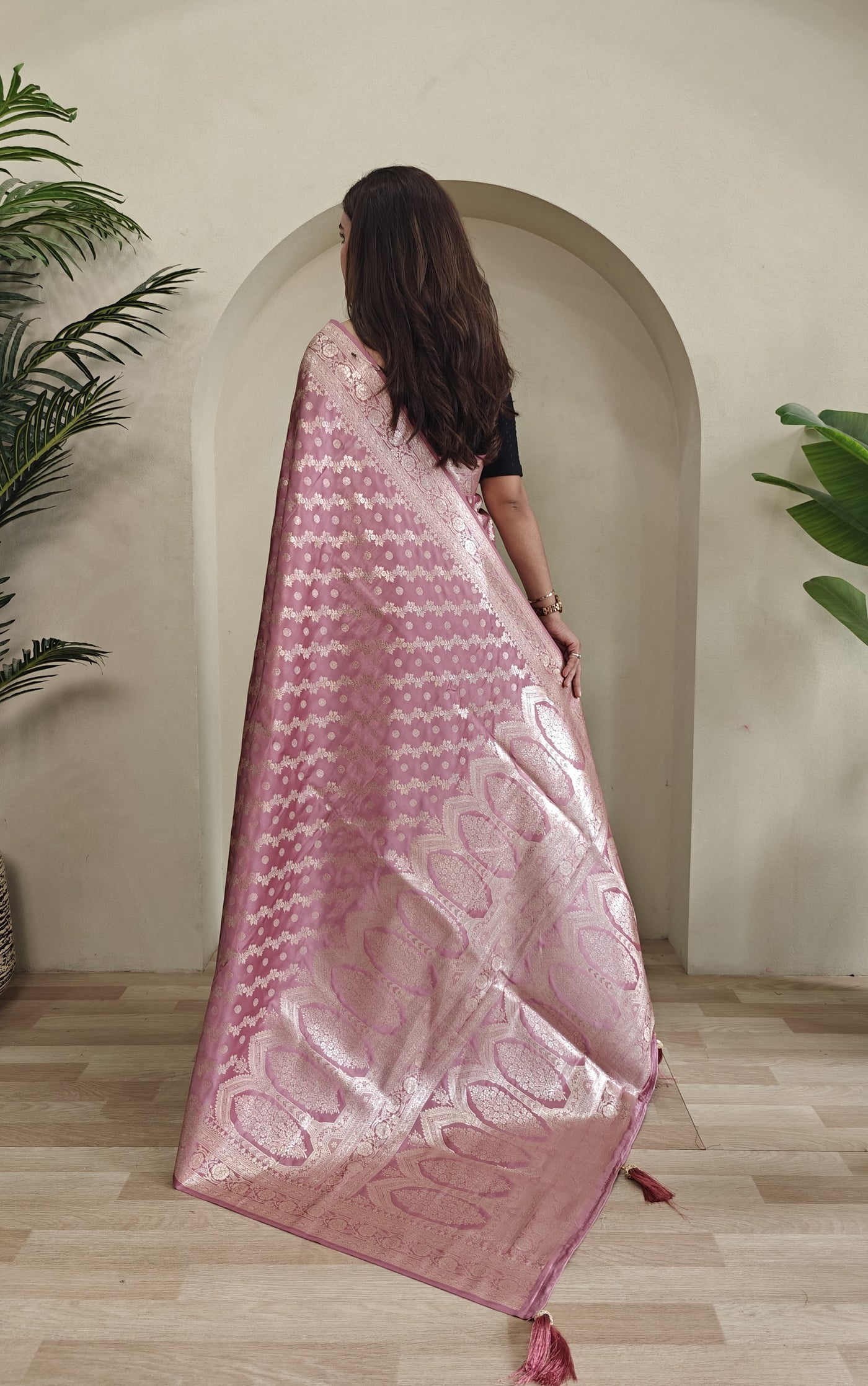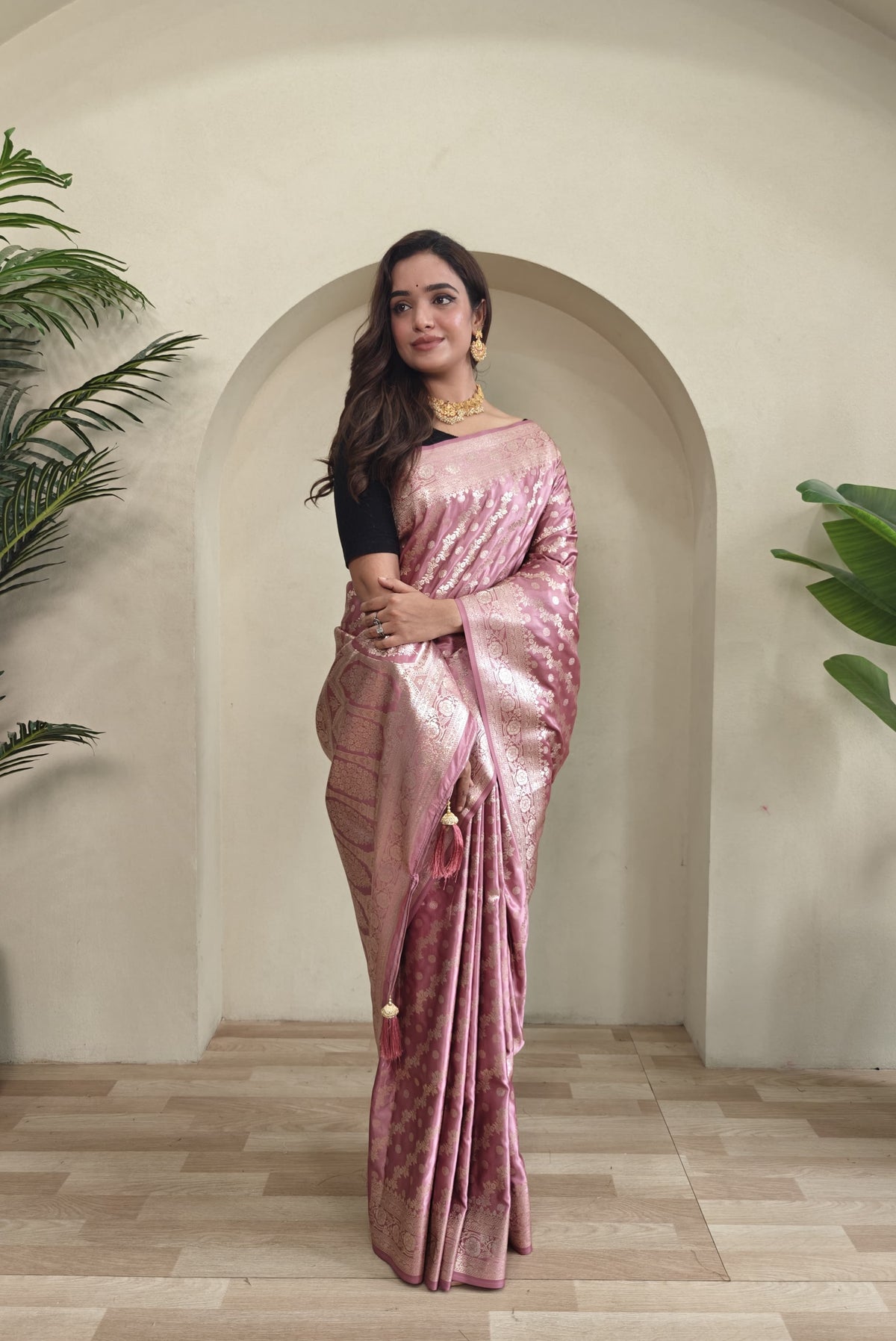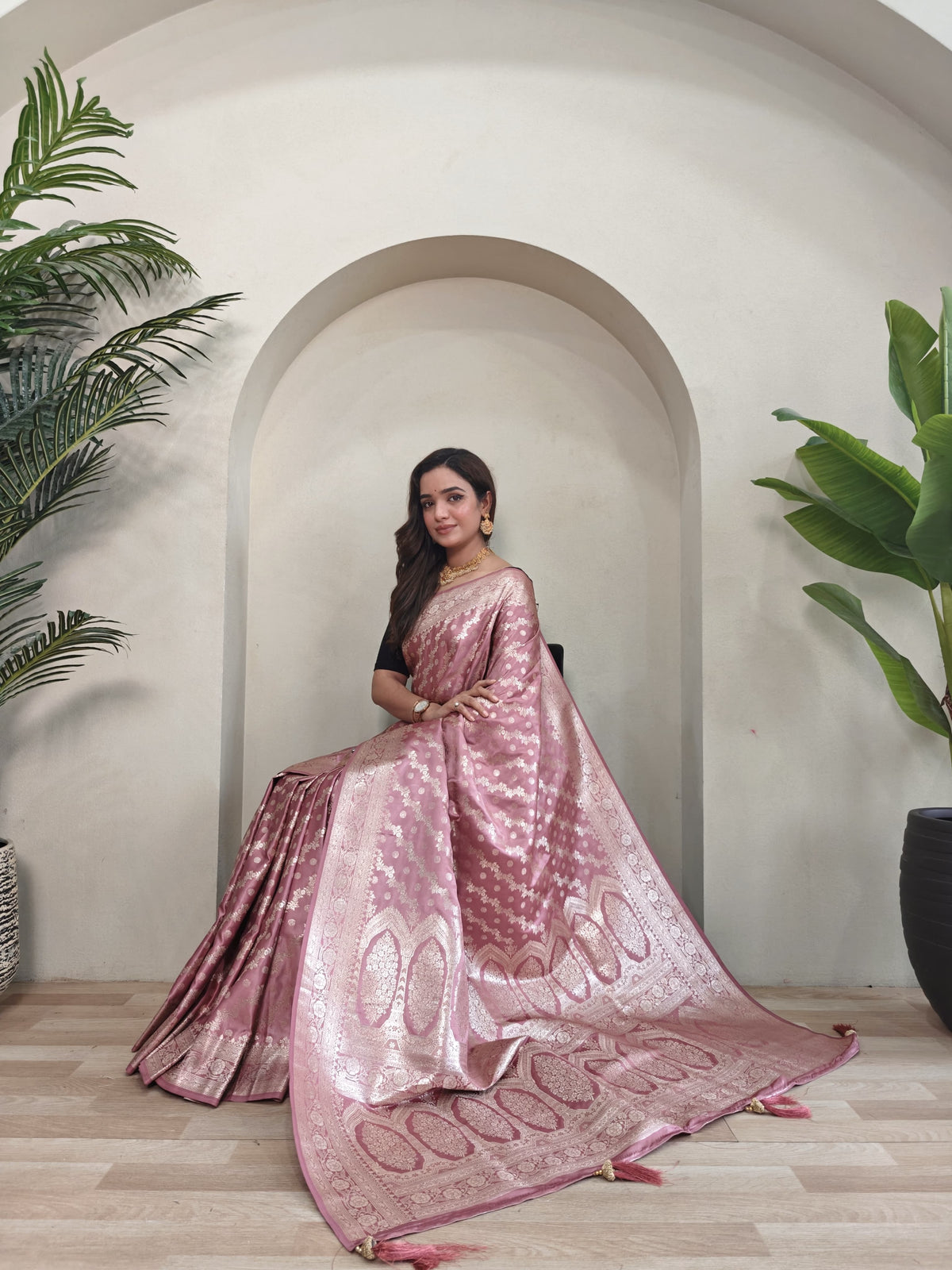 Product Name: New Designer Leheriya Mushro Satin Silk Zari Weaved Baby Pink Saree With Beautiful Tassels Along With Running Unstiched Blouse Piece
