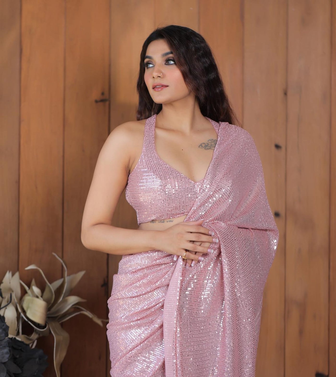 New Designer Georgette Saree With 3mm Sequence Embroidery Work In Double Run With Same Sequence Worked Unstiched Blouse Piece - Light Pink