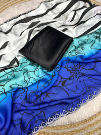 Product Name: New Designer Bollywood Style Digital Printed Dual Blue Shade Soft Sattin Georgette Saree