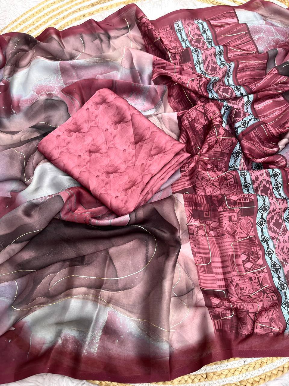 New Designer Bollywood Style Sattin Georgette Saree - Peach Pink