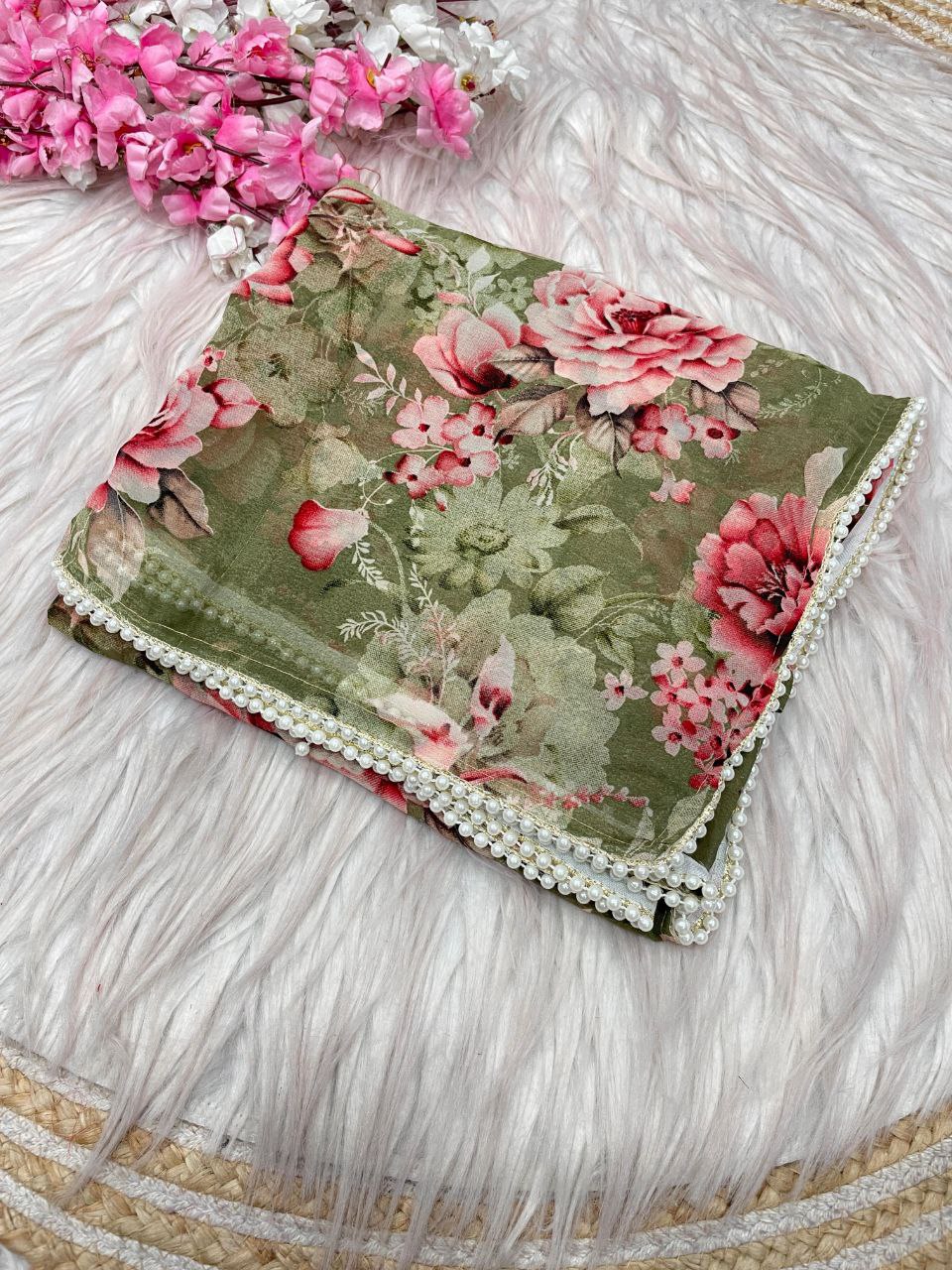 Product Name: New Designer Digital Floral Printed Georgette Saree - Green