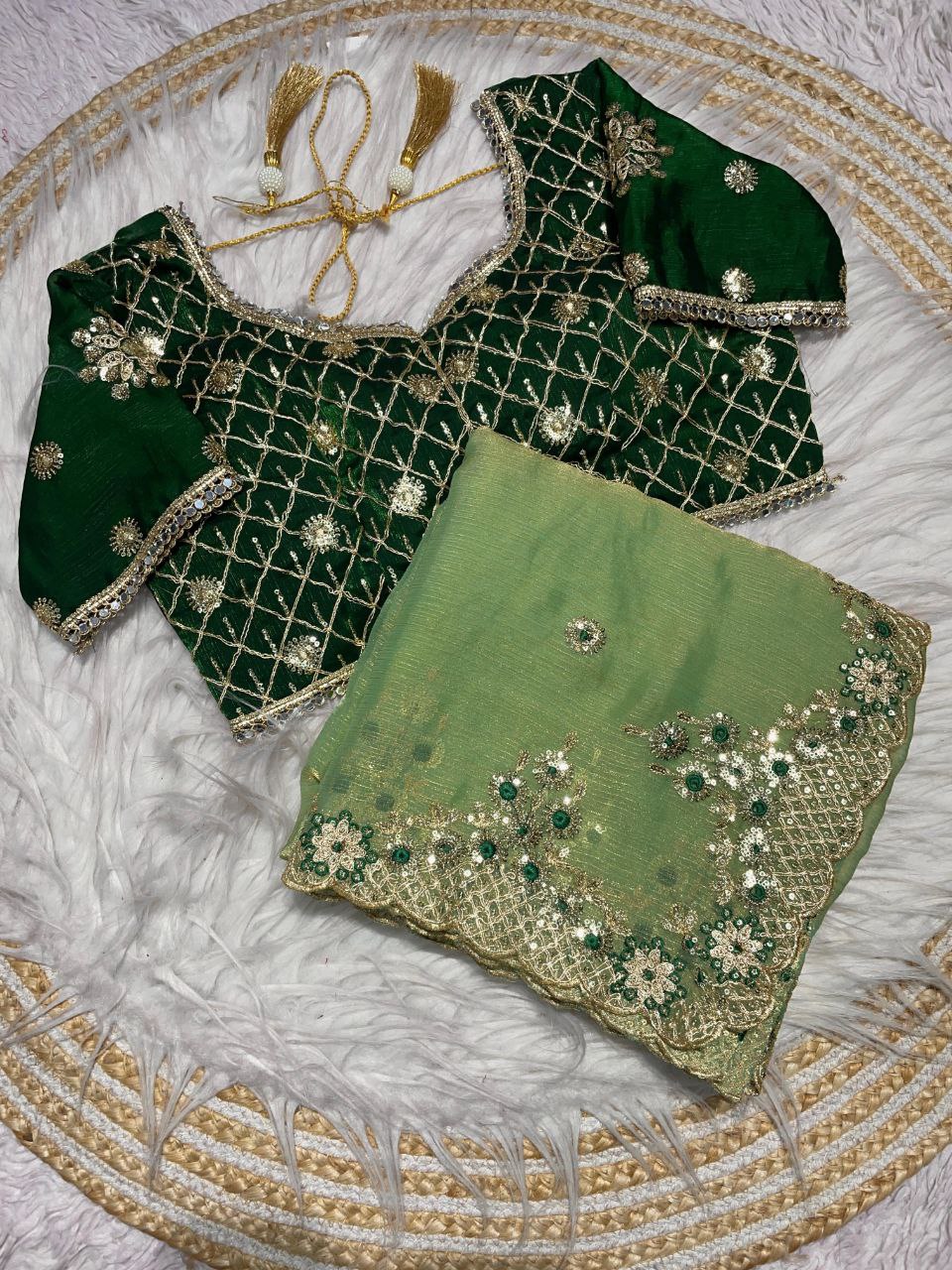 Product Name: New Designer Fendy Chiffon Two Tone Saree - Green