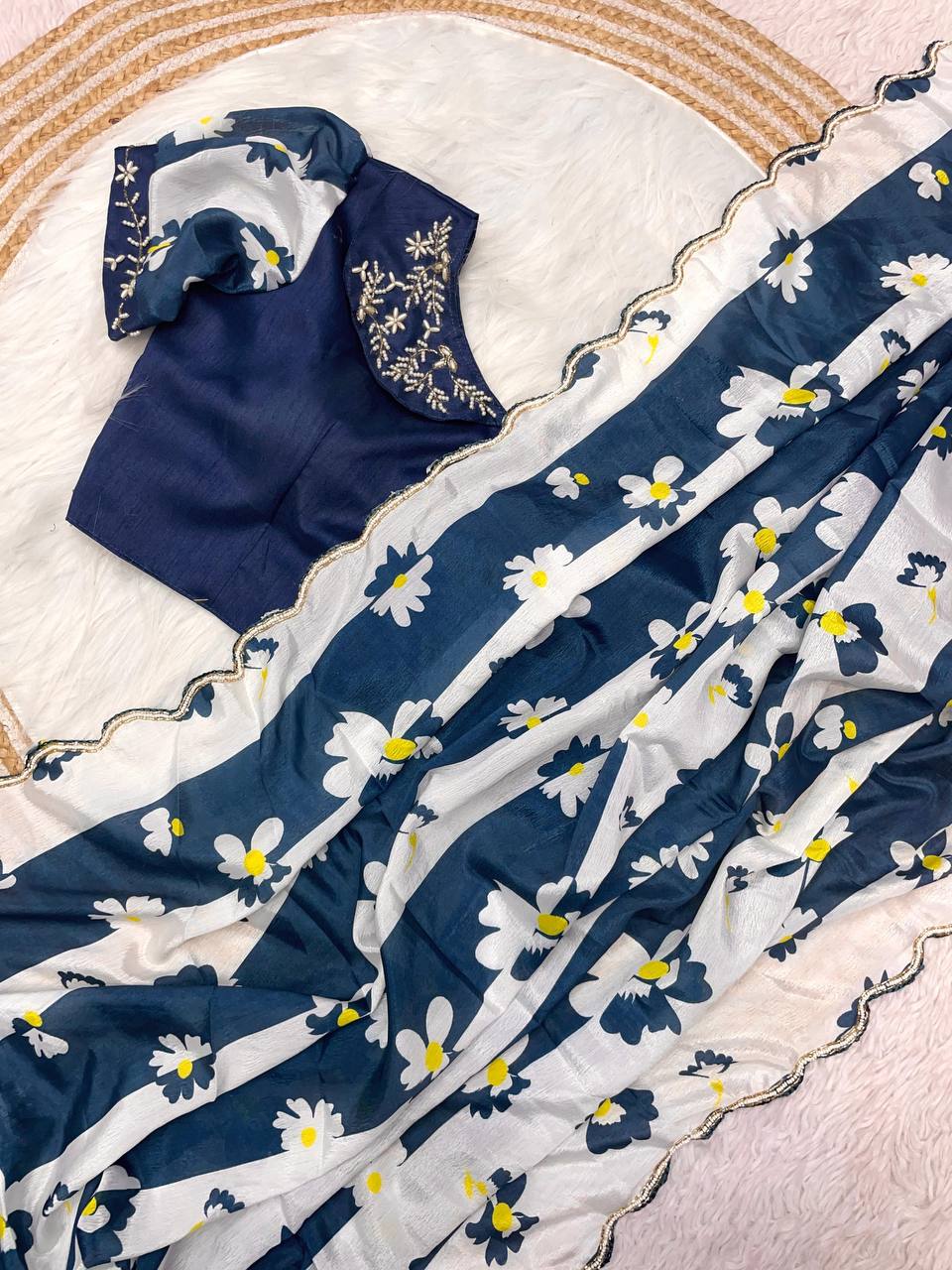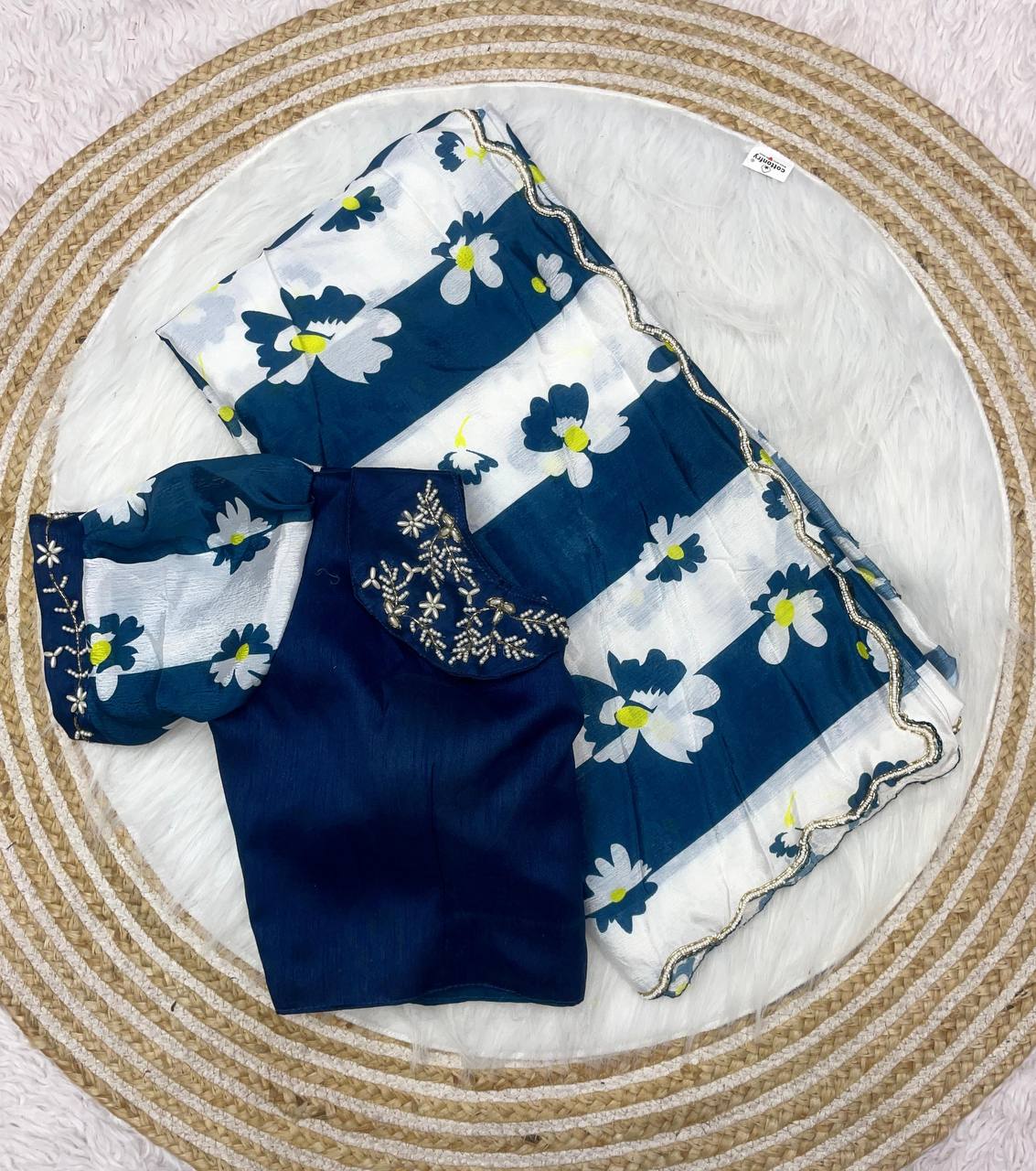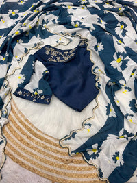 Product Name: New Designer Digital Printed Chinnon Saree - Blue