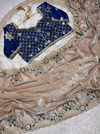 Product Name: New Designer Fendy Chiffon Two Tone Saree - Cream