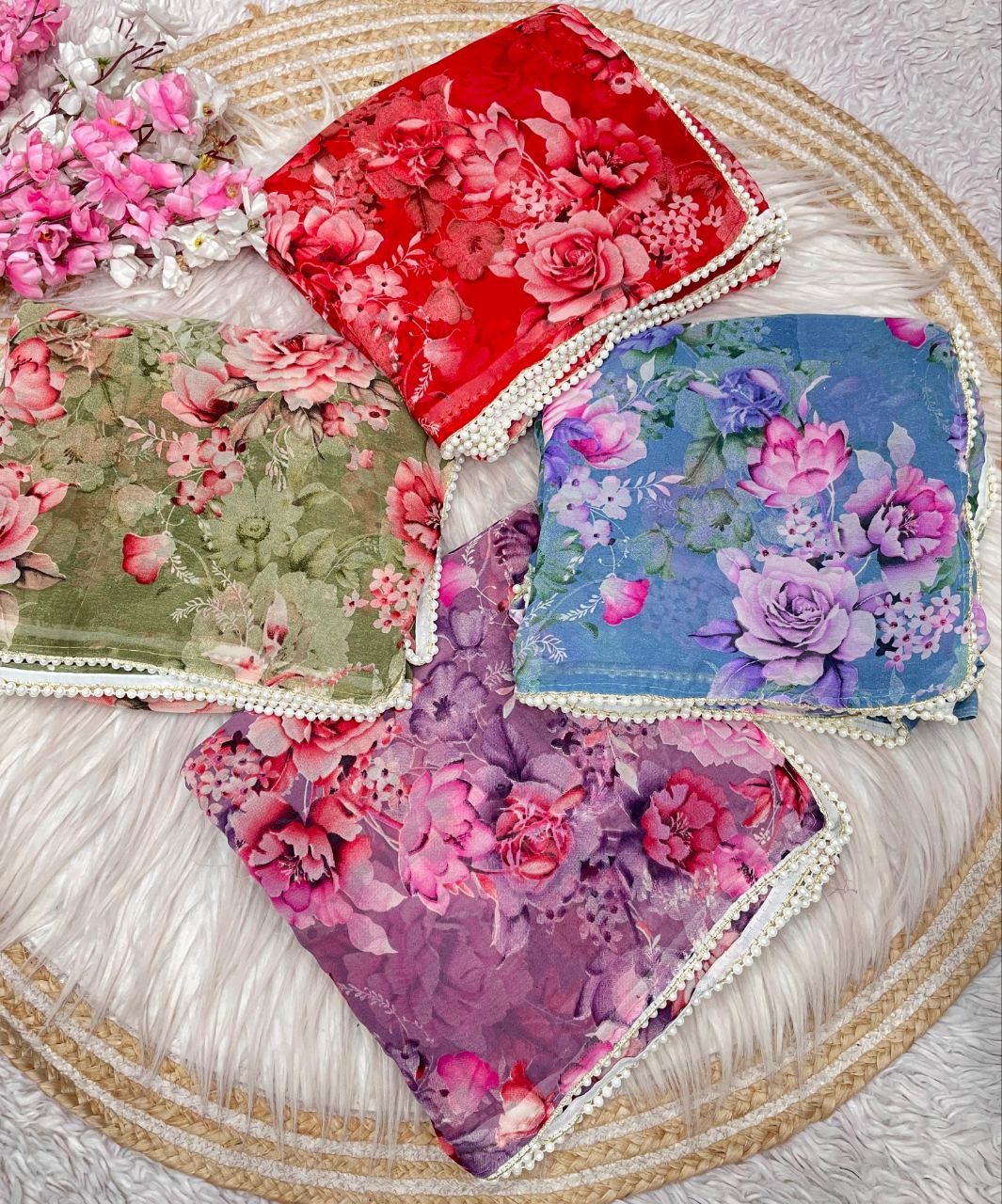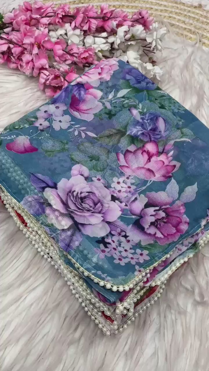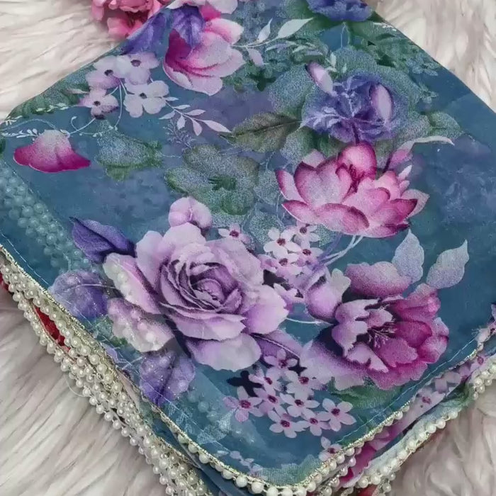 Product Name: New Designer Digital Floral Printed Georgette Saree - Blue