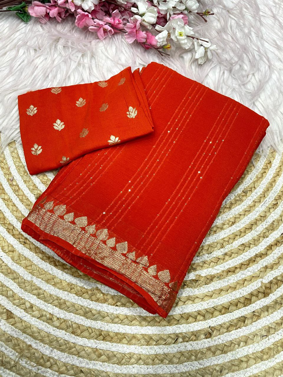 Product Name: New Designer Pure Chinnon Chiffon Silk Saree - Orange