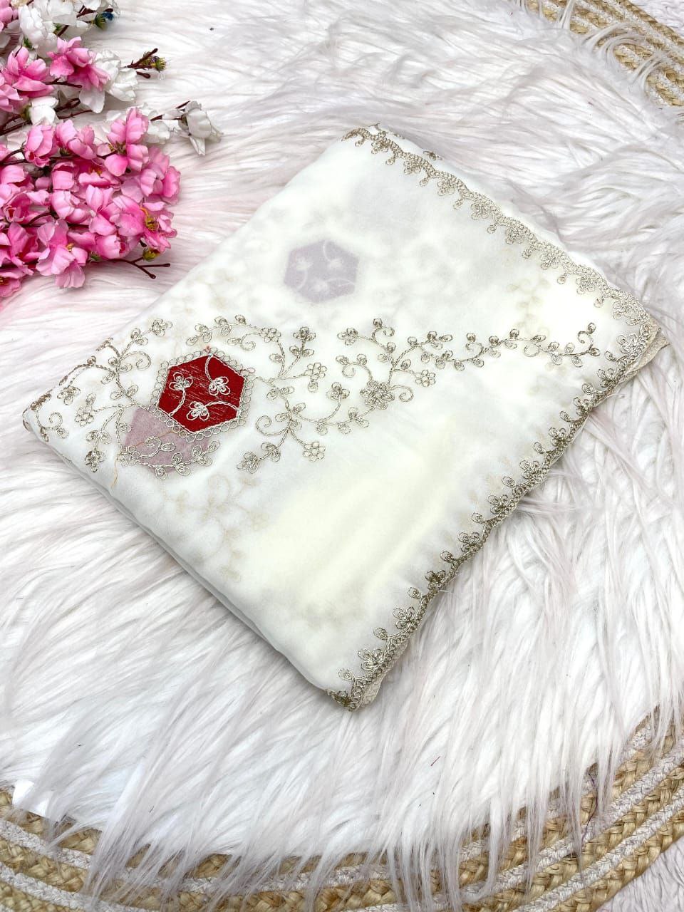 New Designer Blooming Chocolate Silk Saree - White