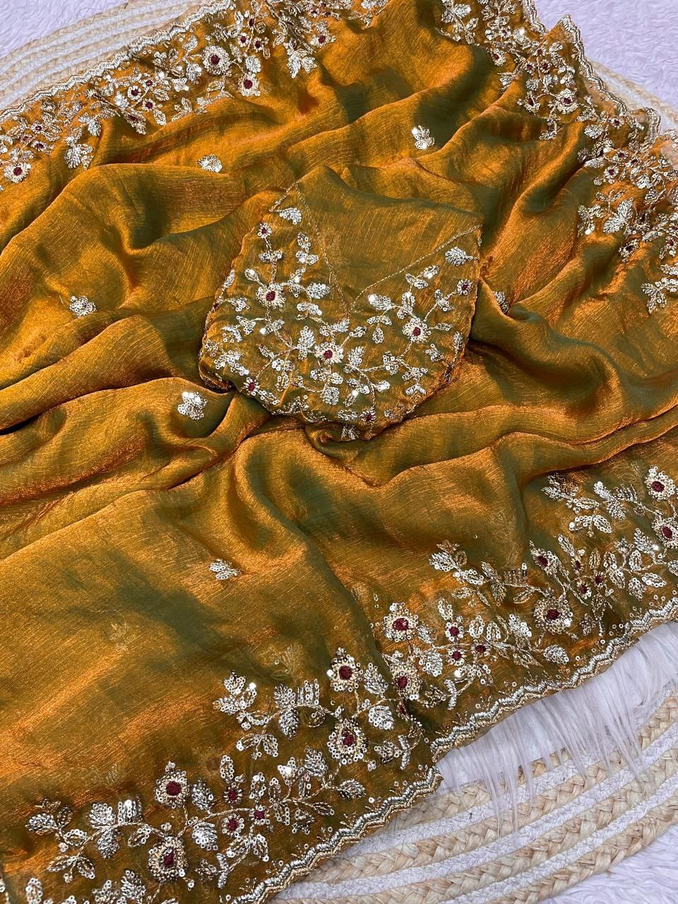 Product Name: New Designer Fendy Chiffon Two Tone Saree - Golden