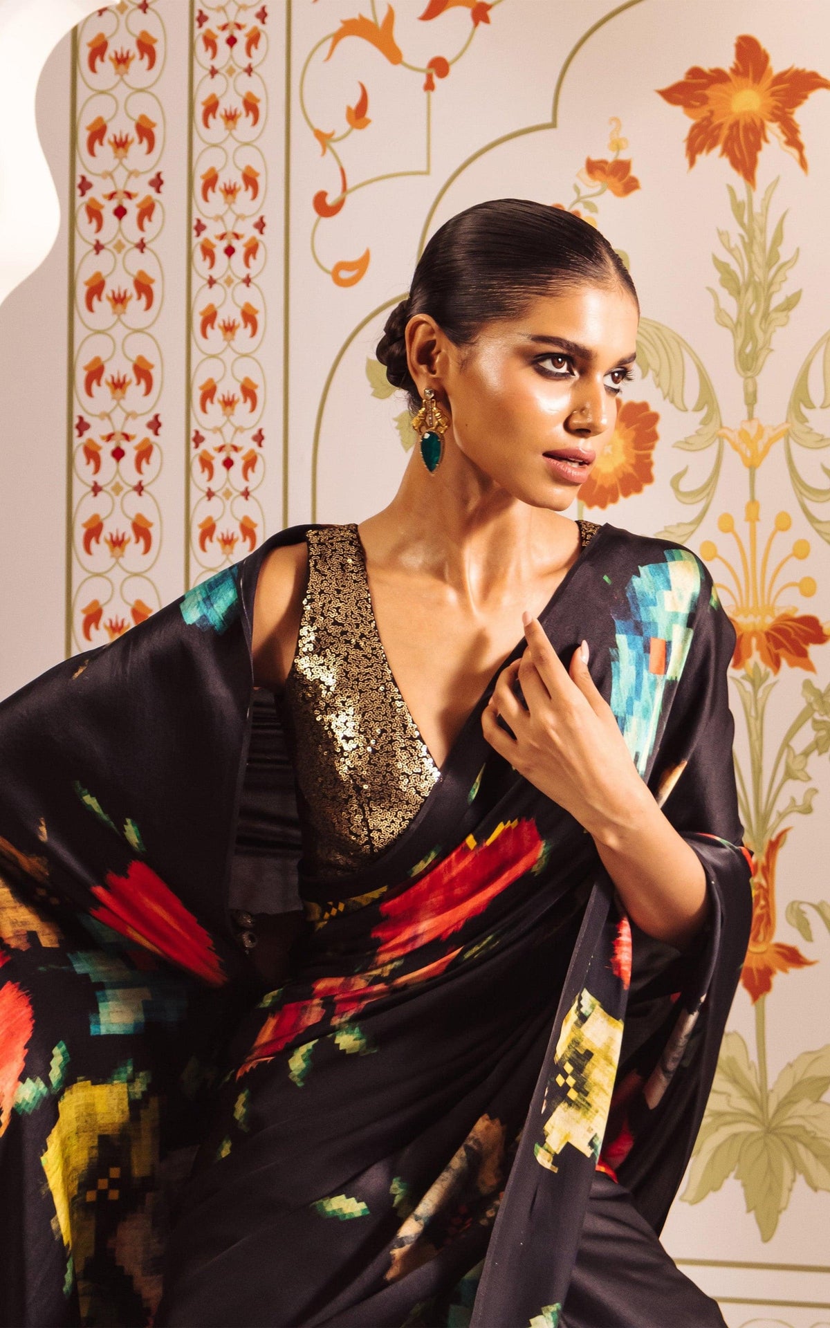 Product Name: New Premium Japan Satin Designer Black Saree With Unstiched Blouse