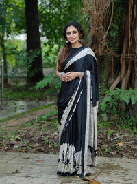 Product Name: New One Minute Ready To Wear Elephant Digital Printed Crape Silk Cream-Black Saree