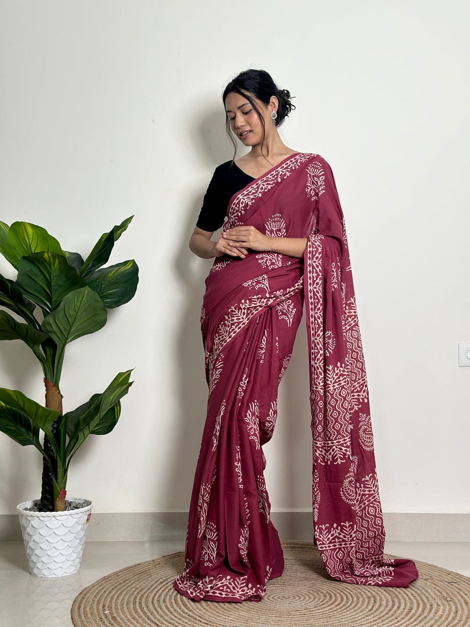 New One Minute Ready To Wear Pure Soft Mul Cotton Silk Maroon Saree Wi – Divashree index