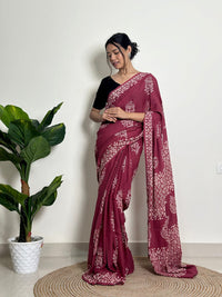 New One Minute Ready To Wear Pure Soft Mul Cotton Silk Maroon Saree With Beautiful Print along With Pocket
