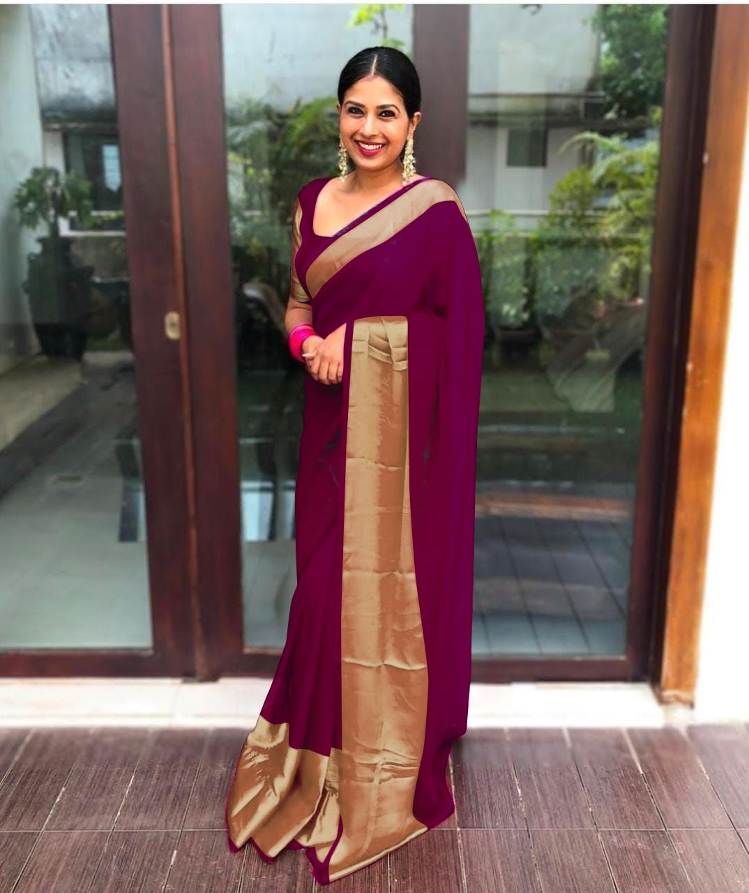 New Fancy Blooming Georgette Wine Saree With Unstiched Blouse – Divashree index