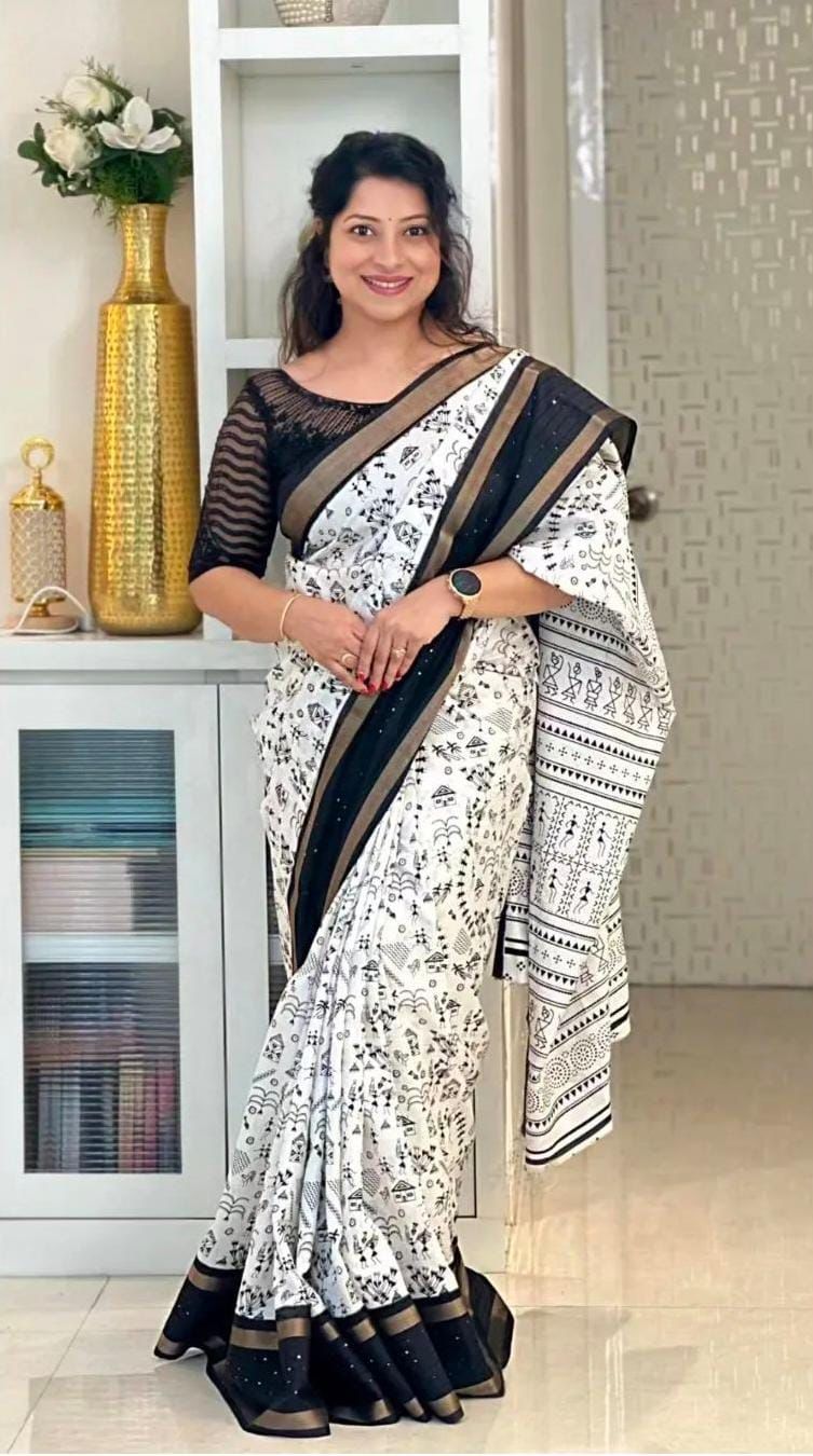 New Fancy Kalamkari Print Soft Cotton White Saree With Unstiched Blous – Divashree index
