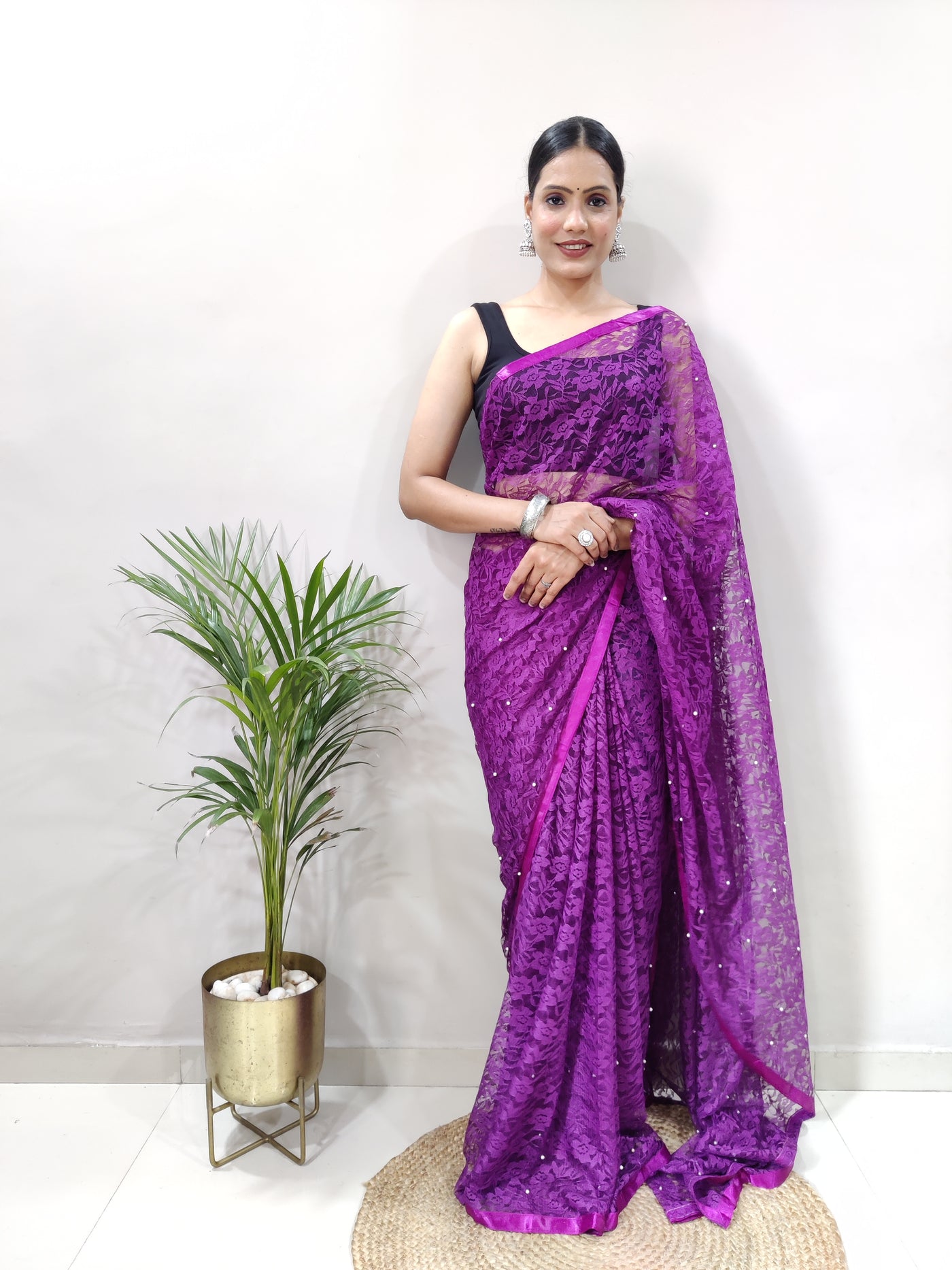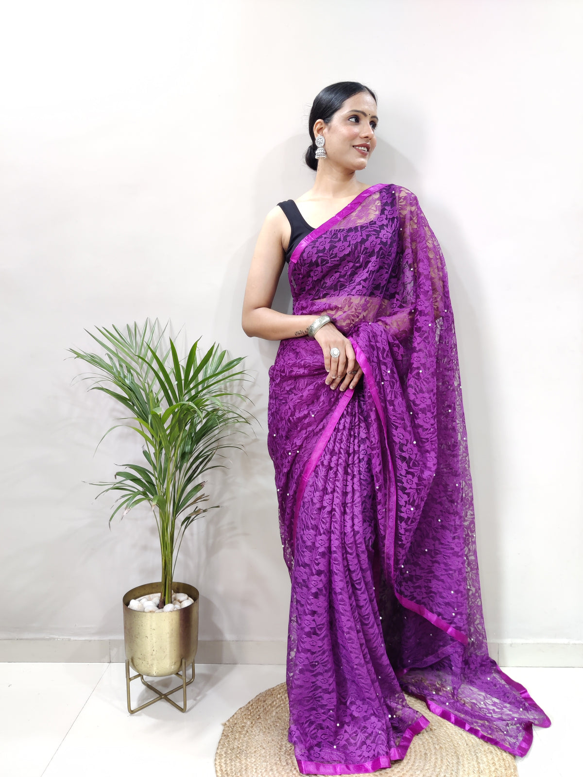 Product Name: New Fancy Net Braso Dark Purple Saree With Unstiched Blouse