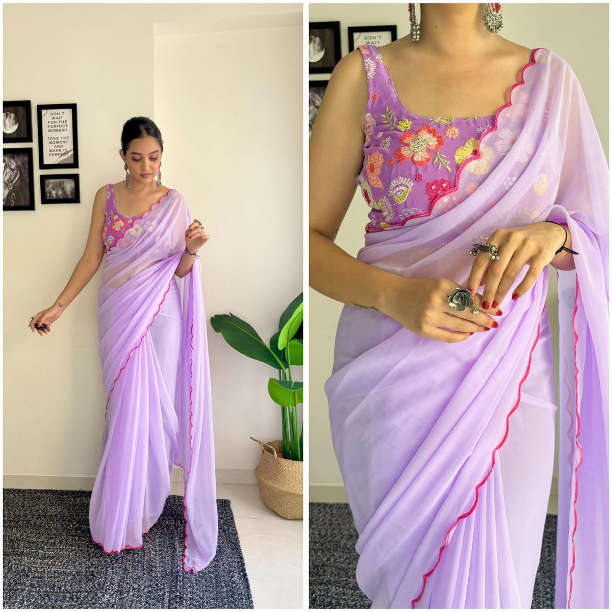 One Minute Ready To Wear Majestic Purple Drapery Pure Soft Georgette S – Divashree index